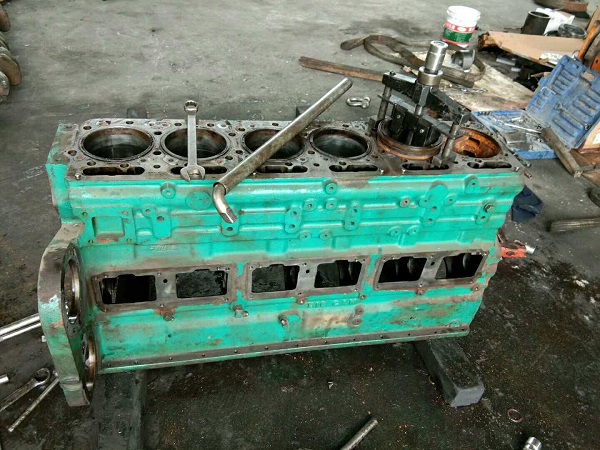 在汽缸内,经过空气滤清器过滤后的洁净空气与喷油嘴喷射出的高压雾化柴油 充分混合,在活塞上行的挤压下,体积缩小,温度迅速升高,达到柴油的燃点。柴油被点燃,混合气体剧烈燃烧,体积迅速膨胀,推动活塞下行,称为‘作功’。各汽缸按一定顺序依次作功,作用在活塞上的推力经过连杆变成了推动曲轴转动的力量,从而带动曲轴旋转。