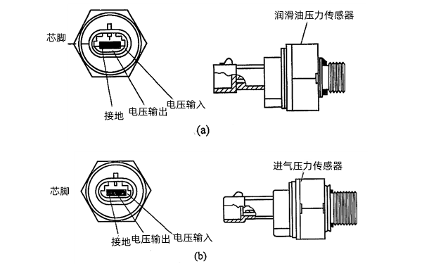 润滑油压力传感器“1”[图3(a)]——规定输出电压为直流0.5V。